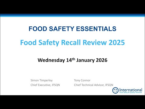 Food Safety Review 2025This month’s presentation is “Food Safety Review of 2025.” In this session we discussed the major food safety recalls and incidents from the past year, analyse recall data to highlight key trends and risk areas, and discuss the measures food businesse...