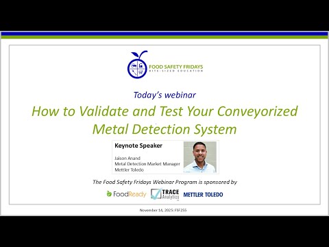 How to Validate and Test Your Conveyorized Metal Detection SystemDiscover the ins and outs of validating metal detectors and dive into effective methods for testing conveyor systems while navigating regulatory requirements with ease. Jaison Anand from METTLER TOLEDO will share practical insights and essential tips t...